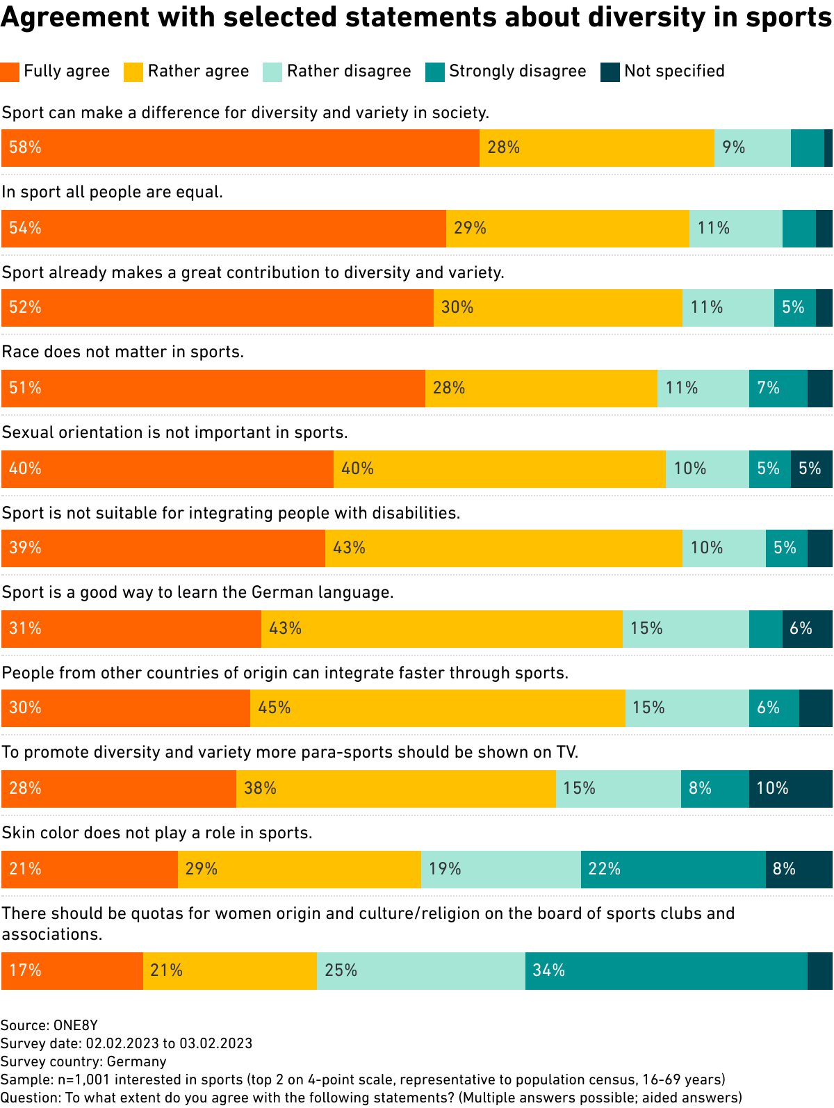 Agreement with selected statements about diversity in sports