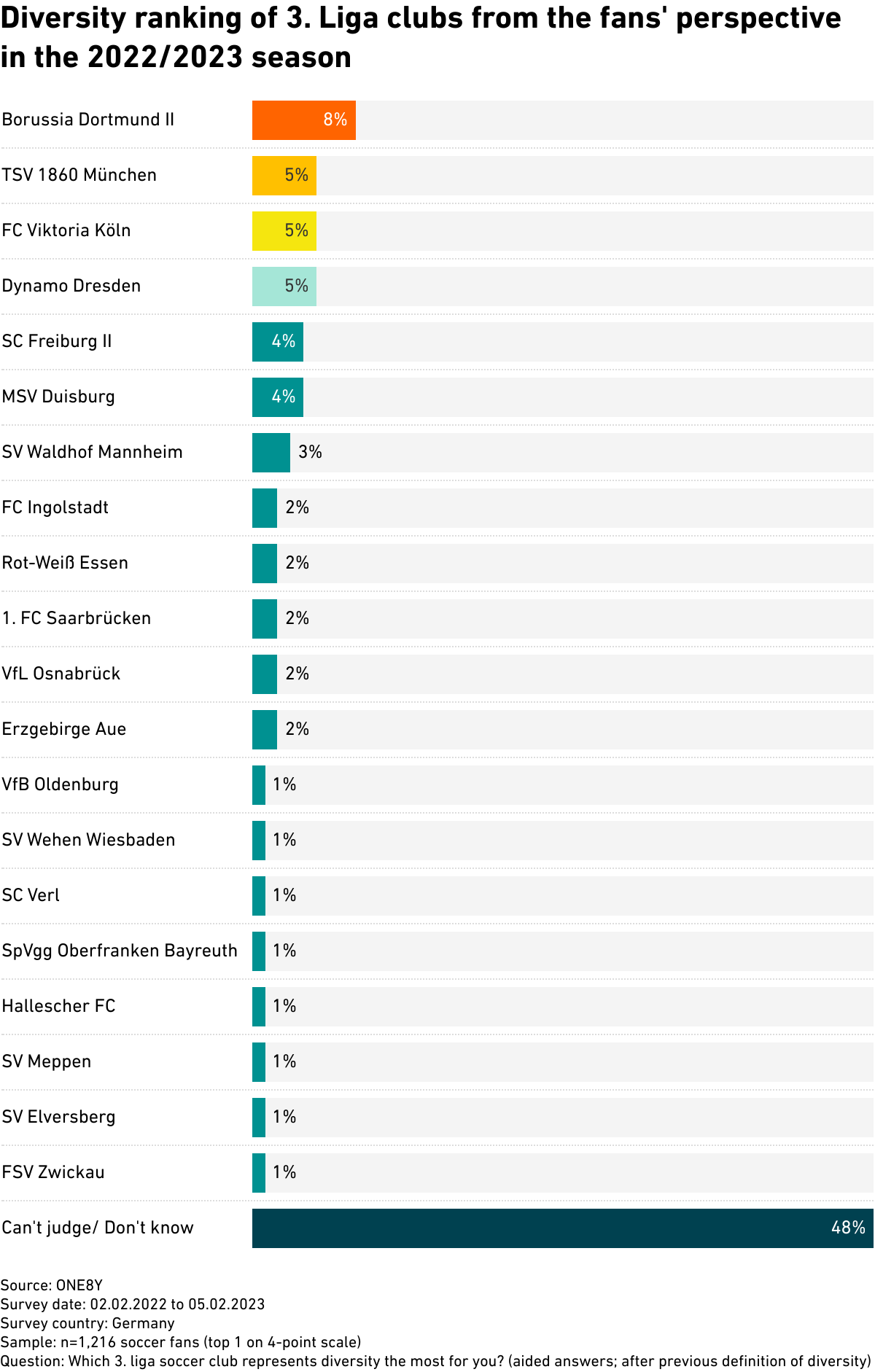 Diversity ranking of 3. Liga clubs from the fans' perspective in the 2022/2023 season
