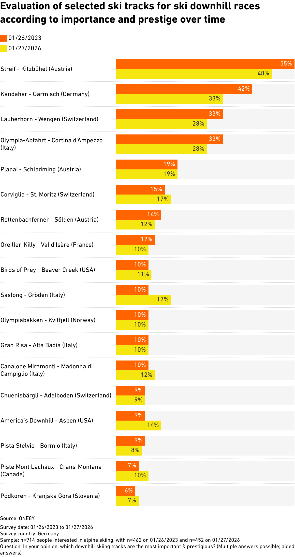 In your opinion, which downhill skiing tracks are the most important & prestigious? (Multiple answers possible; aided answers)