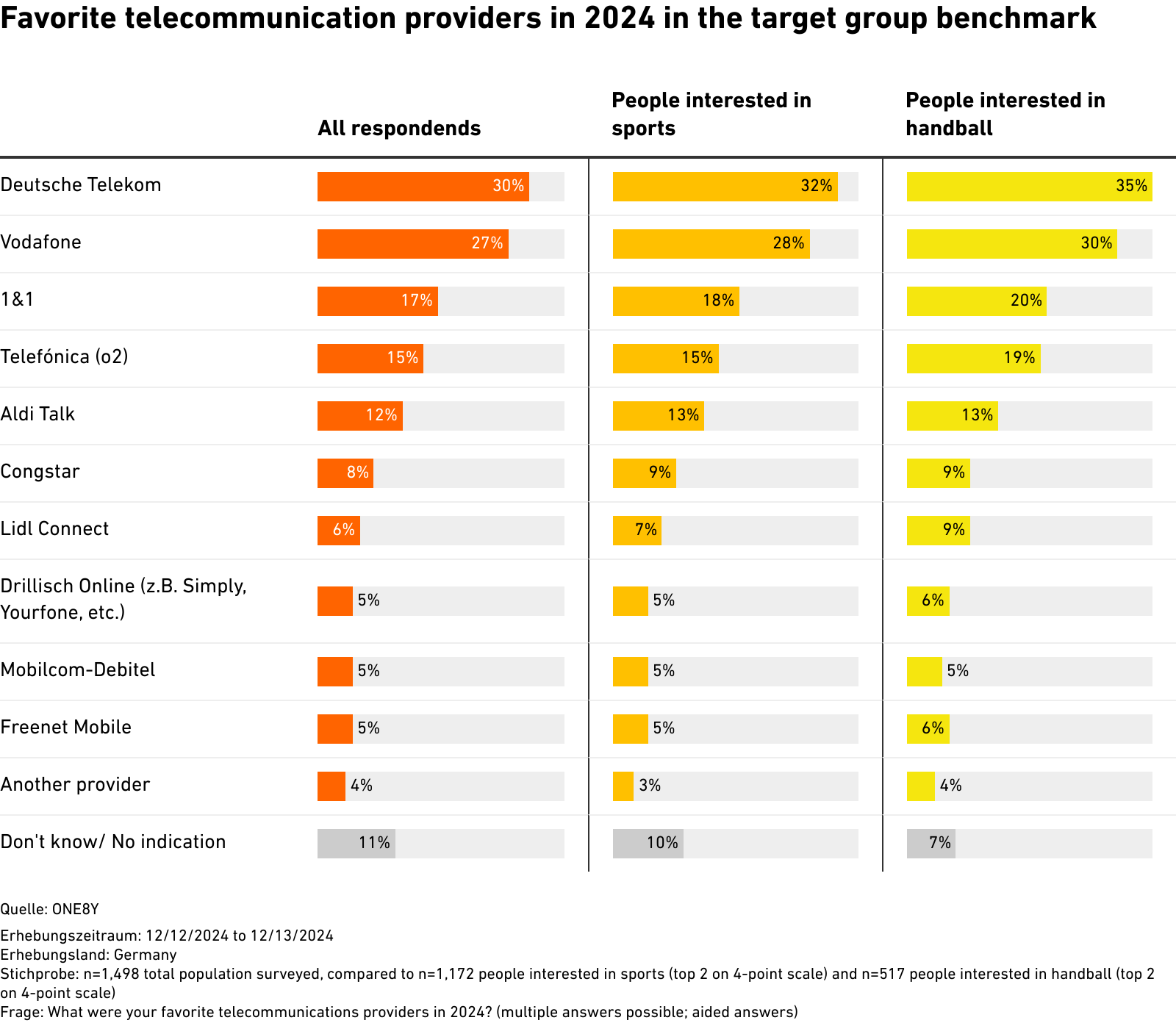 Favorite telecommunication providers in 2024 in the target group benchmark