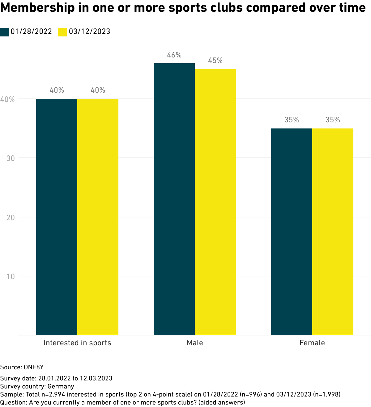 Total n=2,994 interested in sports (top 2 on 4-point scale) on 01/28/2022 (n=996) and 03/12/2023 (n=1,998)