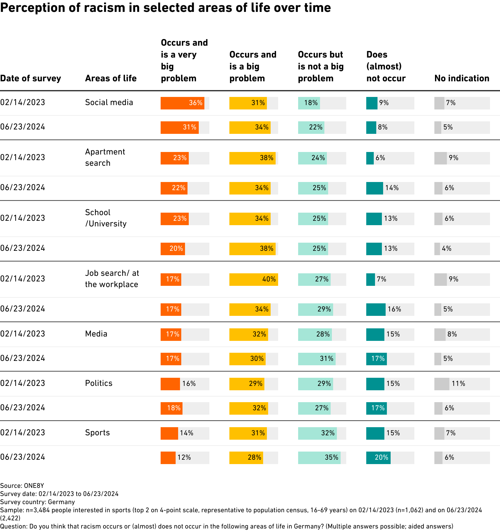 Do you think that racism occurs or (almost) does not occur in the following areas of life in Germany? (Multiple answers possible; aided answers)