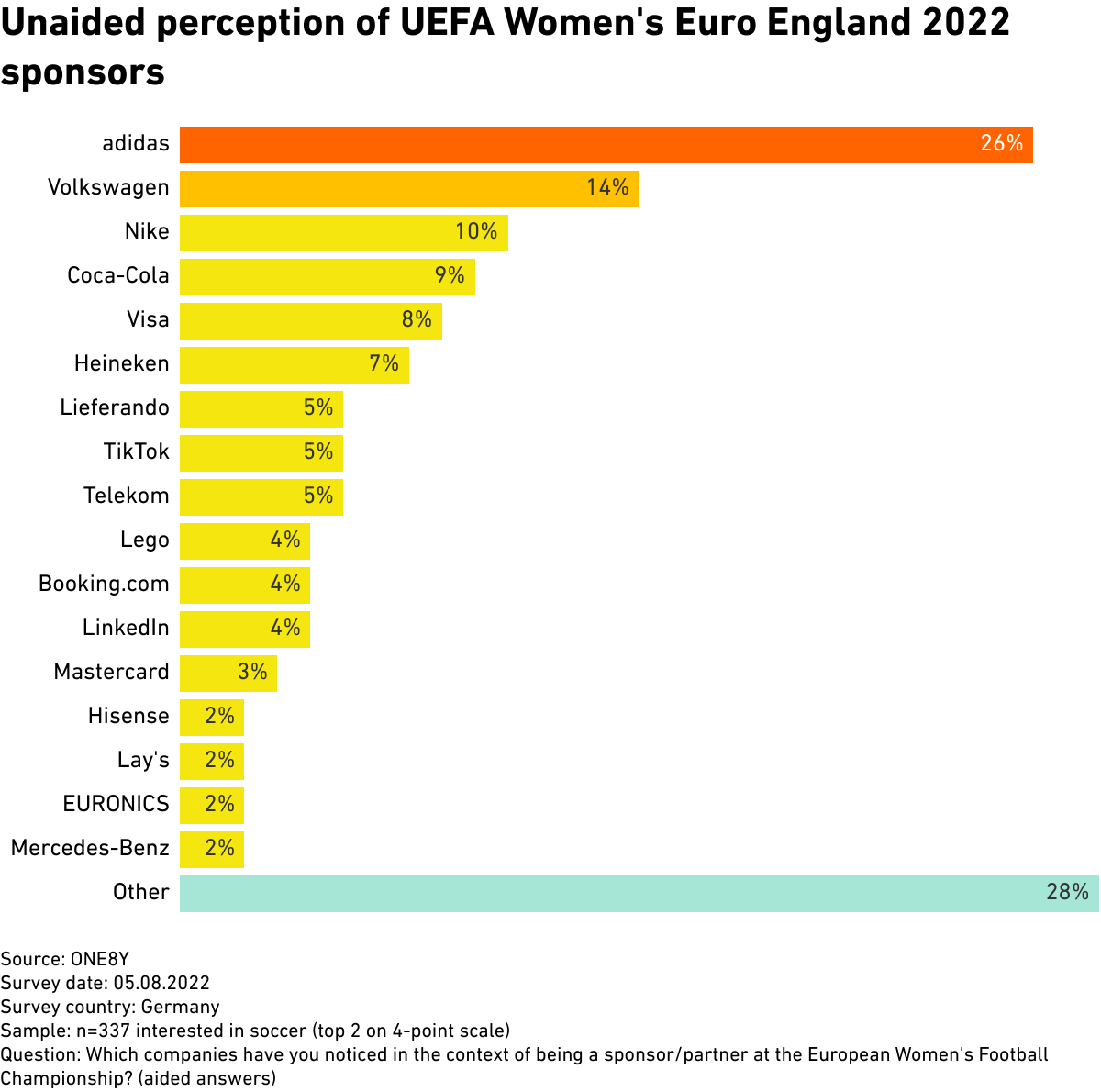 Unaided perception of UEFA Women's Euro England 2022 sponsors