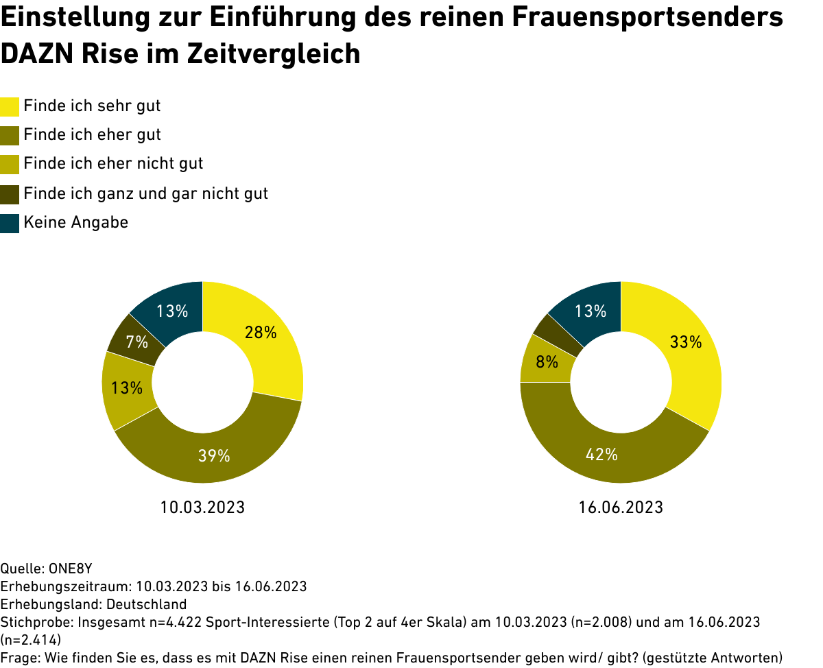 Einstellung zur Einführung des reinen Frauensportsenders DAZN Rise im Zeitvergleich