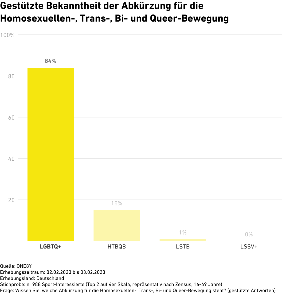 Gestützte Bekanntheit der Abkürzung für die Homosexuellen-, Trans-, Bi- und Queer-Bewegung