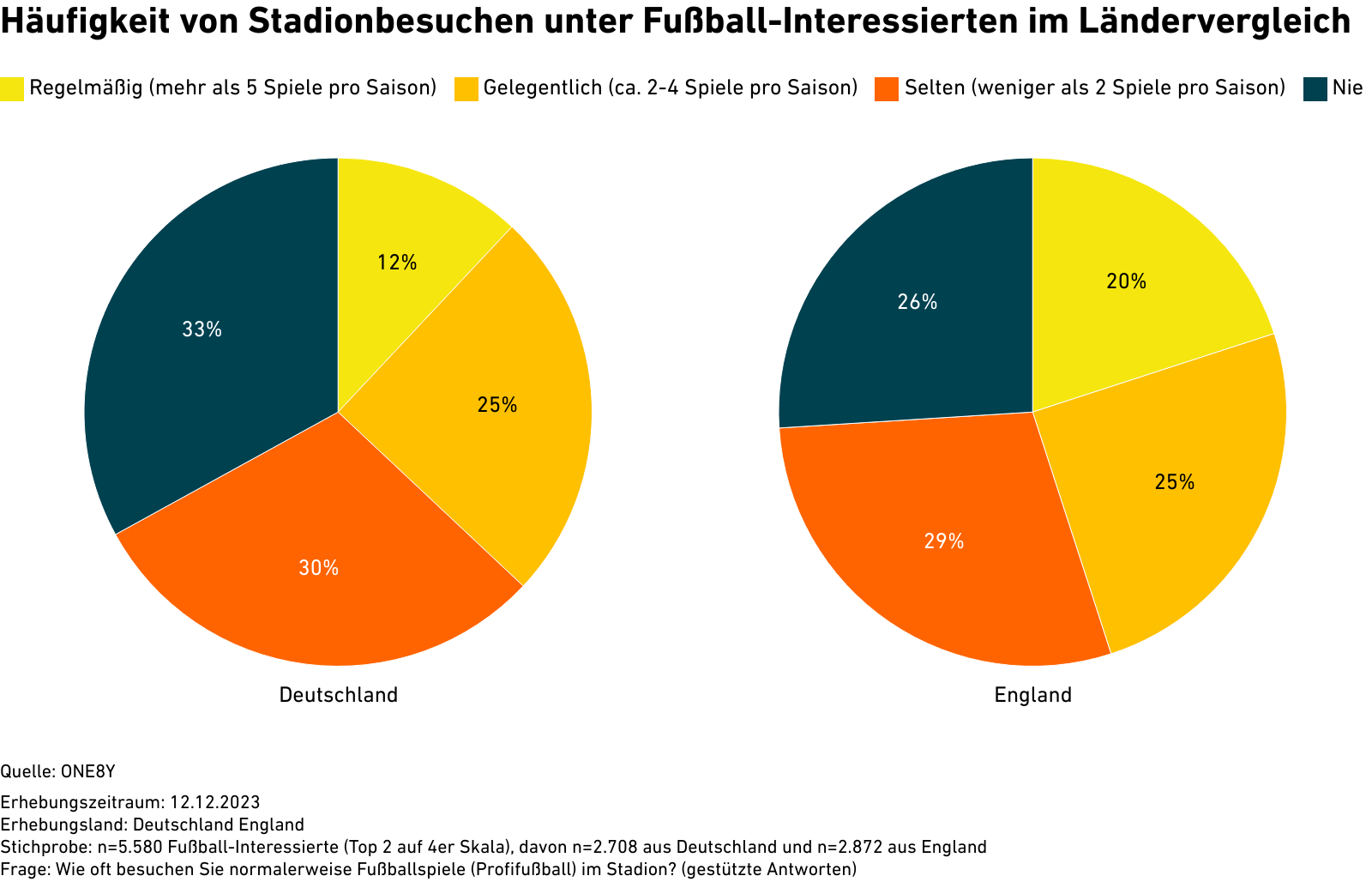 Häufigkeit von Stadionbesuchen unter Fußball-Interessierten im Ländervergleich