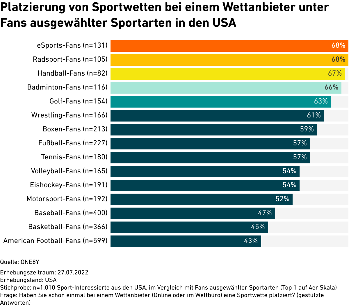 Platzierung von Sportwetten bei einem Wettanbieter unter Fans ausgewählter Sportarten in den USA