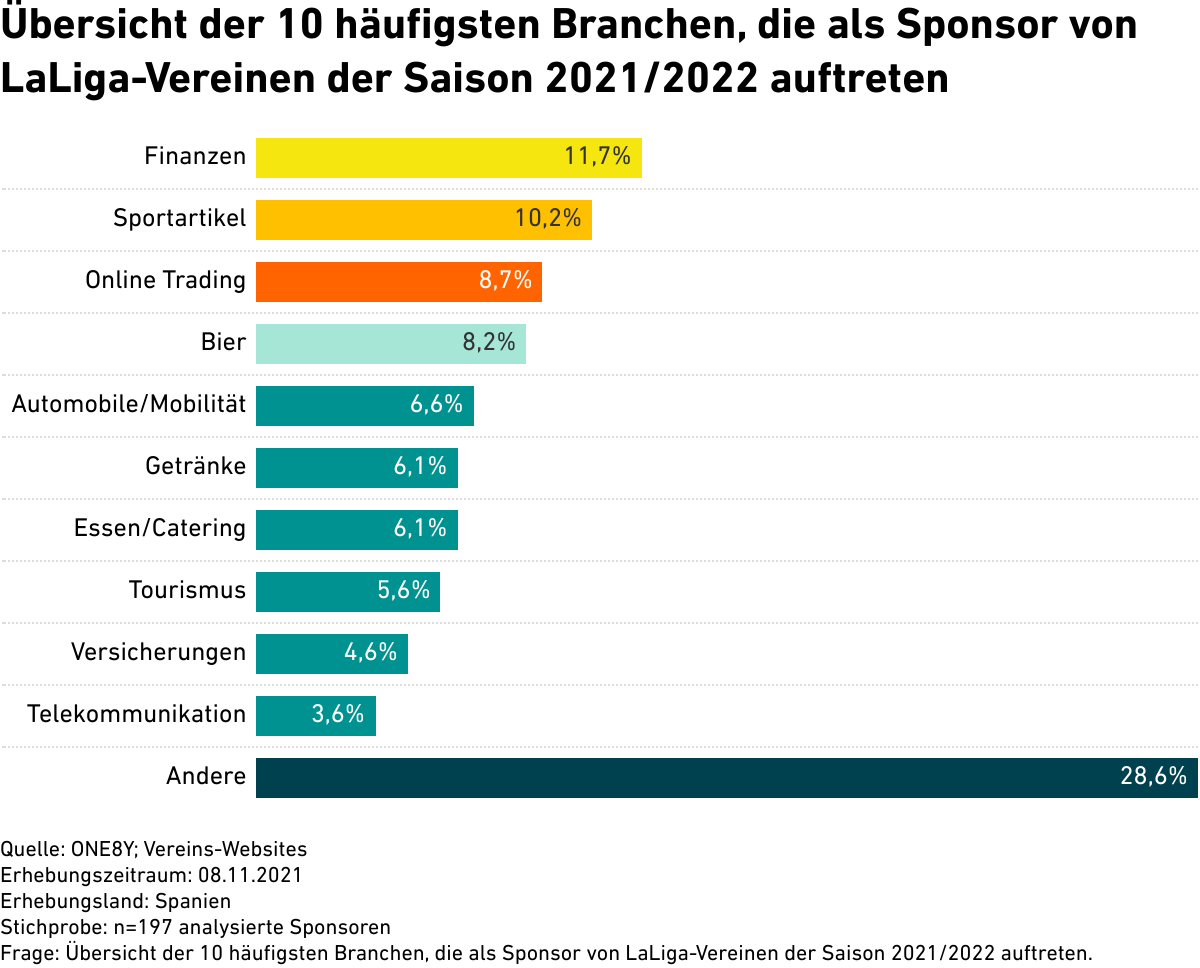 Übersicht der 10 häufigsten Branchen, die als Sponsor von LaLiga-Vereinen der Saison 2021/2022 auftreten.
